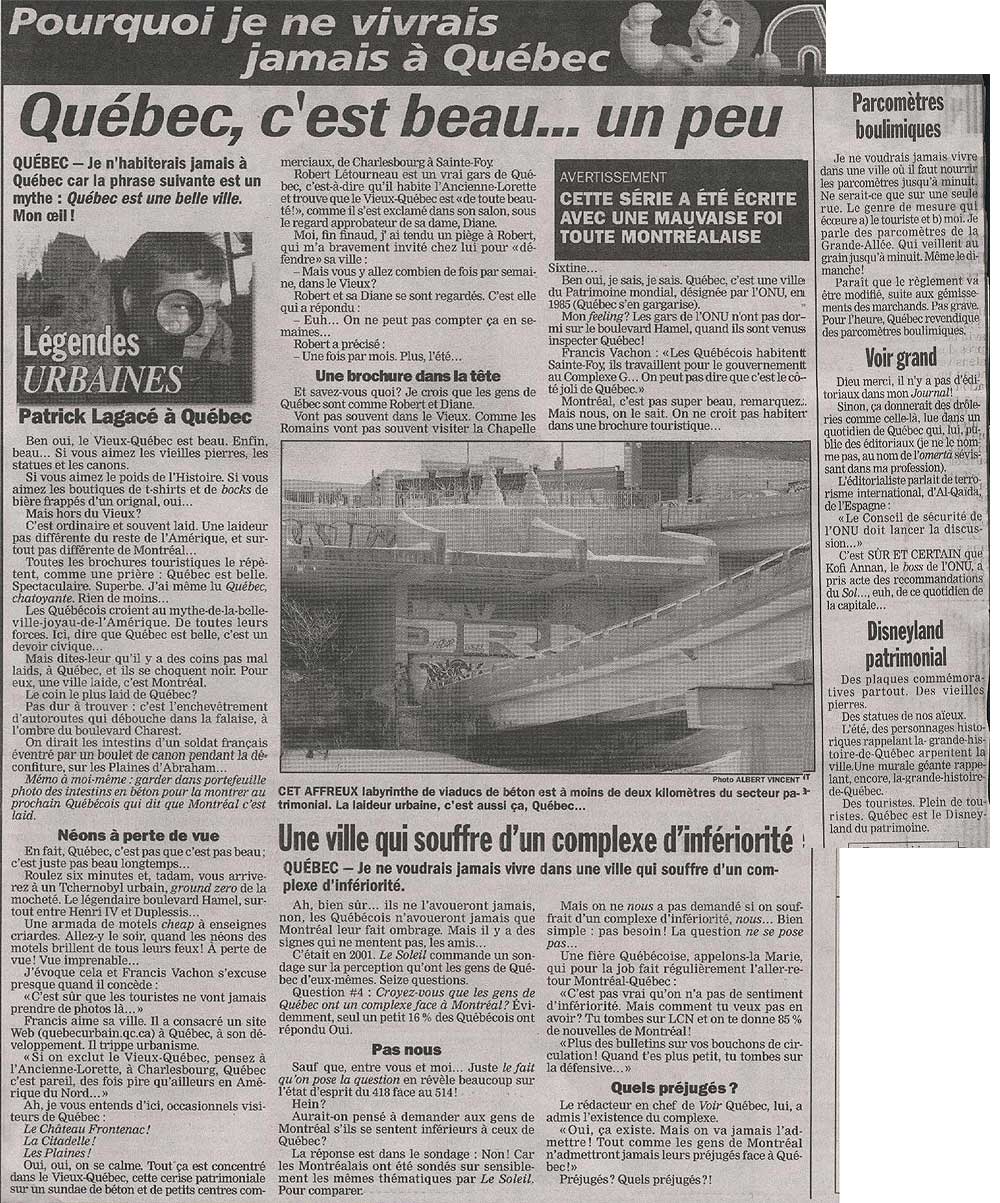 sur Québec expliquant pourquoi il n'y habiterai jamais. Je