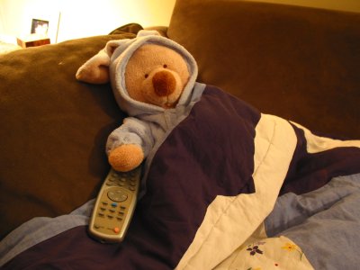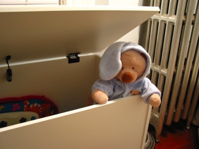 Et puis un peu plus hardi, dans le canapé (avec la télécommande de la télé) ou bien assis sur son propre fauteuil, en train de lire un gros bouquin.
