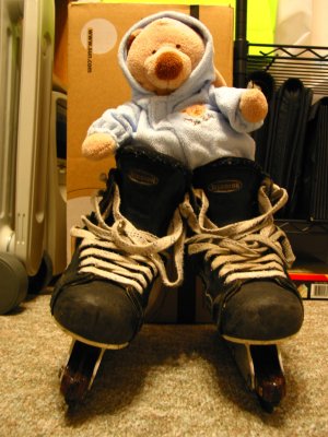 Il ira même fouiner dans les affaires de son papa, pour essayer les patins de hockey ...